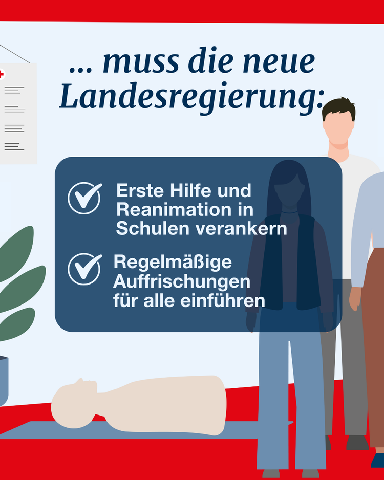 Wer einen sicheren Umgang mit Erster Hilfe erlernt, kann Leben retten oder sich und sein Umfeld vor größerem Schaden bewahren. Bislang erwirbt ein Großteil der Bevölkerung seine Kenntnisse in Erster Hilfe nur einmal im Leben, meist beim Erwerb des Führerscheins. Dies ist jedoch unzureichend, um im Alltag sicher handeln zu können. Andere Länder beweisen, dass beispielsweise durch eine deutlich höhere Reanimationsquote mehr Leben gerettet werden können. Verbindliche, regelmäßig wiederkehrende Erste-Hilfe-Auffrischungen sind für alle Teile der Bevölkerung dringend notwendig.