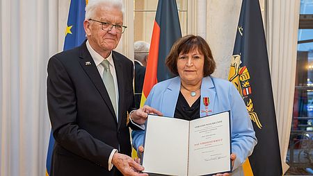 Anita Reuter, Landesleiterin der Sozialarbeit im Badischen Roten Kreuz, ist von Ministerpräsident Winfried Kretschmann mit dem Bundesverdienstkreuz ausgezeichnet und für ihr herausragendes ehrenamtliches Engagement über Jahrzehnte hinweg gewürdigt worden. Das Badische Rote Kreuz gratuliert herzlich zu dieser besonderen Ehrung.